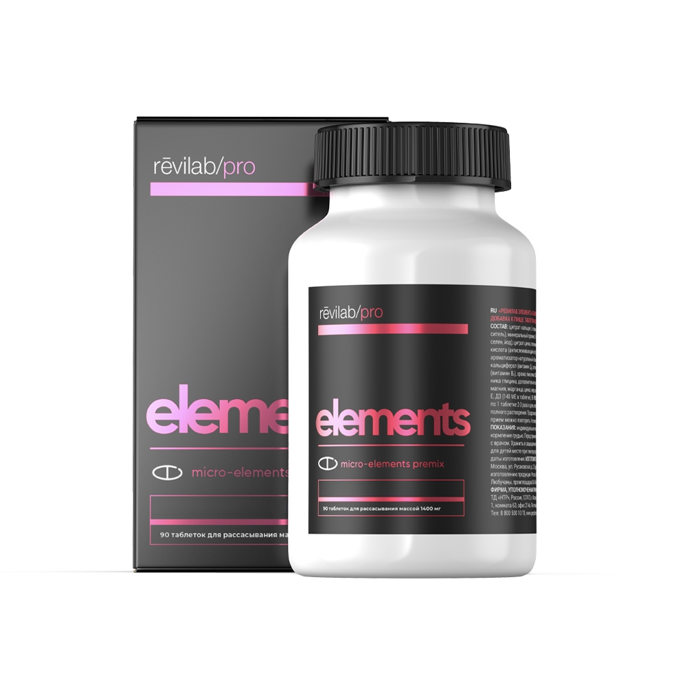 Revilab pro Elements — is the latest development, which is an unconditional alternative to all previously created mineral preparations. The unique composition based on macro- and microelements, minerals and vitamins contributes to the correction of biochemical processes, recharging of mitochondria, and optimization of the immune system. Due to the synergy of the components, an active process of skin regeneration occurs, collagen synthesis is stimulated, and has a positive effect on the production of sex hormones, which gives a qualitative improvement in reproductive health.