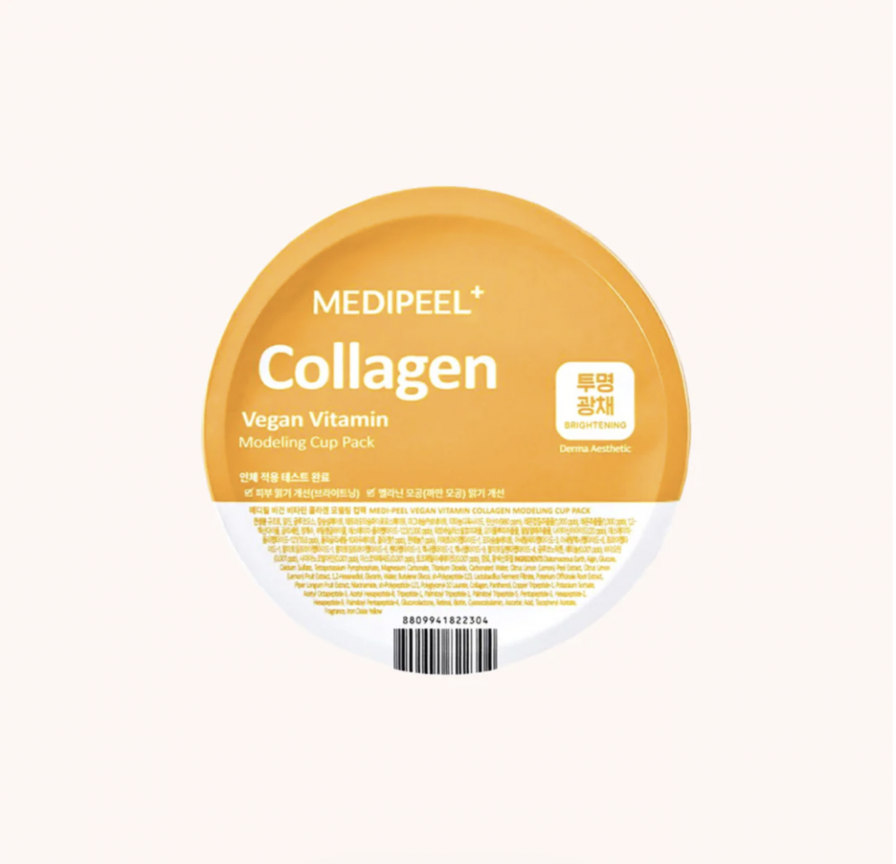 Осветляющая маска Medi-Peel Collagen Vegan Vitamin Modeling Cup Pack устраняет тусклость, уменьшает видимость пигментных пятен и следов постакне, выравнивает тон кожи и придает ей здоровое сияние. Осветляет веснушки и пигментацию, вызванную воздействием ультрафиолета.