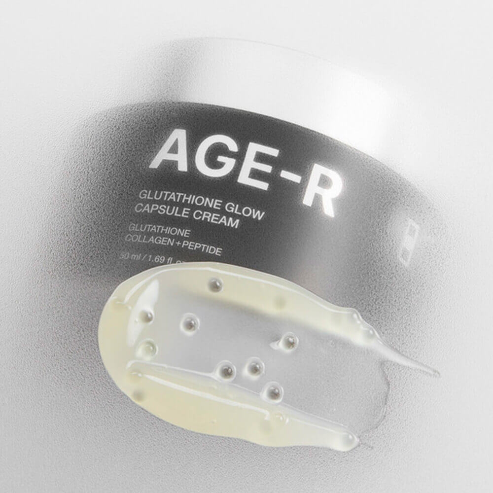Увлажняющий крем с глутатионом Medicube AGE-R Glutathione Glow Capsule Cream оживляет кожу, выравнивает её тон и придаёт сияние. Благодаря высокой концентрации глутатиона, крем уменьшает пигментные пятна, улучшает текстуру кожи и способствует повышению её эластичности. Капсулы с активными веществами высвобождают питательные компоненты, которые глубоко увлажняют, питают кожу и стимулируют процессы регенерации, обеспечивая более ровную текстуру и тон.