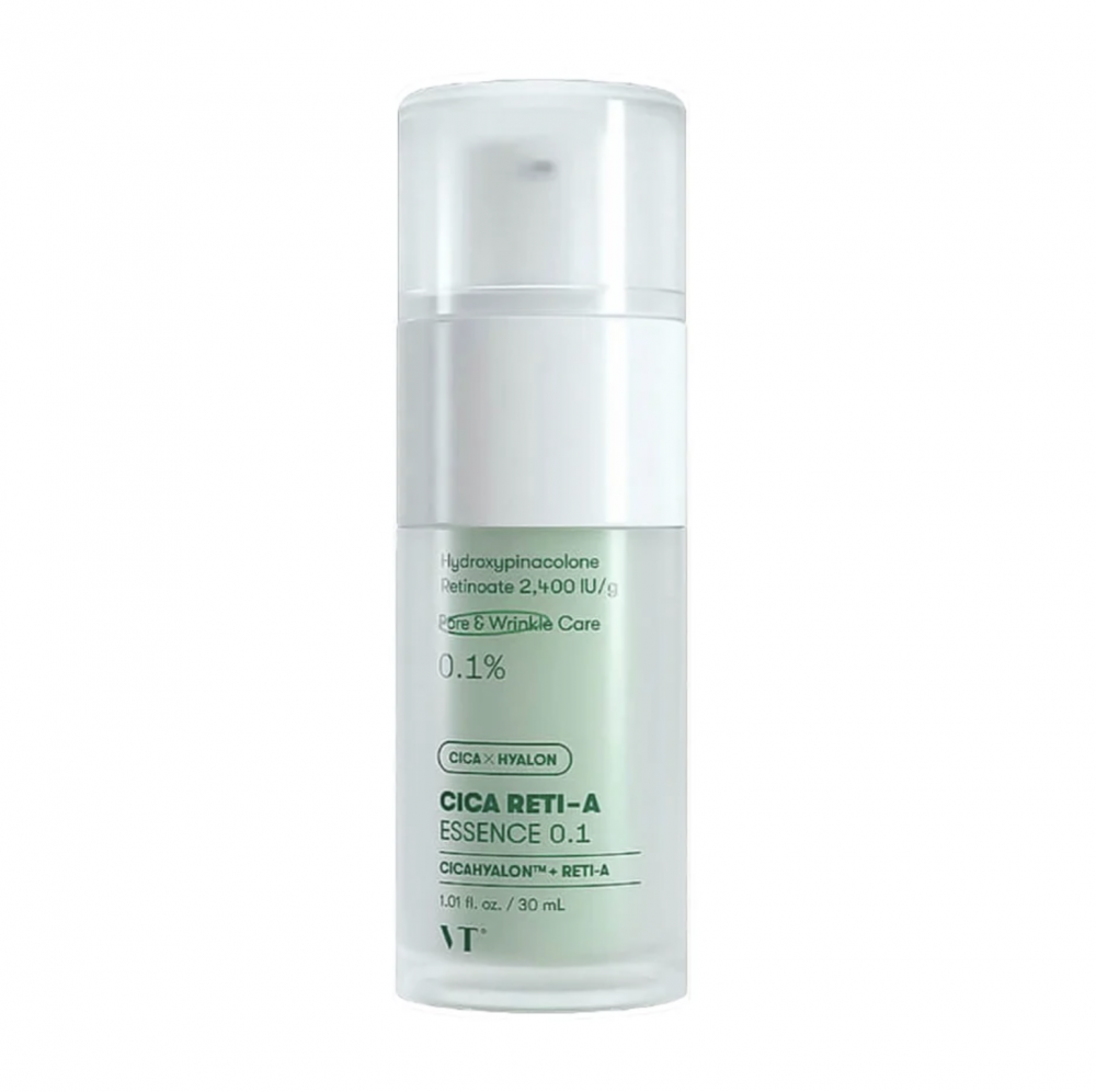 Лёгкая бустер-эссенция VT Cosmetics Cica Reti-A Essence 0.1% сочетает ретинол и центеллу для борьбы с :