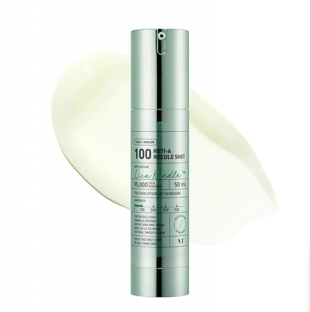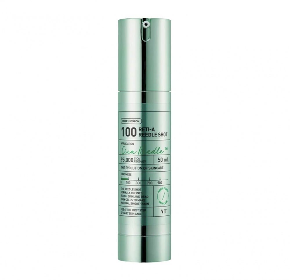 Бустер-сыворотка VT Cosmetics Reti-A Reedle Shot 100 стимулирует обновление клеток, за счёт чего разглаживает рельеф: